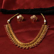 Kasu Mala, also known as Kasumala or Kasu Haram, is a traditional South Indian necklace with deep cultural significance. "Kasu" means coin in Tamil, and "Mala" means necklace. This beautiful jewellery piece is made with small gold-plated coins linked together, often featuring intricate carvings of Hindu deities, floral patterns, or temple-inspired designs. The Chettinadu-style Kasu Mala is bold and grand, making it an essential part of South Indian bridal jewellery. Many designs are influenced by temple jewellery, with motifs of goddess Lakshmi and other sacred symbols. Some modern versions are adorned with ruby stones, emeralds, or kundan work, adding extra beauty. Perfect for weddings, festivals, and special occasions, this timeless piece adds a royal and traditional touch to any outfit. It pairs beautifully with sarees, silk blouses, and ethnic wear, making it a must-have for brides and jewellery lovers who appreciate antique designs.