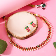 A beautiful antique-style short necklace, elegantly designed with pearls and ruby stones. Simple yet sophisticated, it's perfect for adding a touch of tradition and charm to any outfit. Ideal for festive occasions, weddings, and everyday elegance.