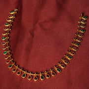 a beautifully crafted temple jewellery set featuring a stunning multi-color Kemp stone necklace. designed with intricate details, this set adds a touch of tradition and elegance to any outfit. perfect for weddings, festive occasions, and cultural celebrations, it blends timeless charm with classic craftsmanship.